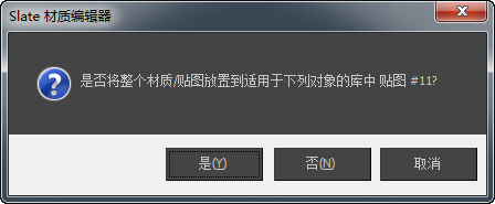 如果您选择从属节点(例如,贴图或子材质),但未选择其父对象,3ds Max 将询问您是否要在库中包括父对象: