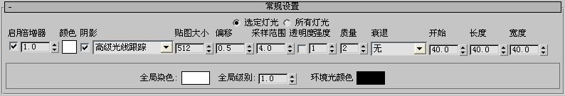 - 选定灯光选中该选项后,常规设置仅影响选定灯光。