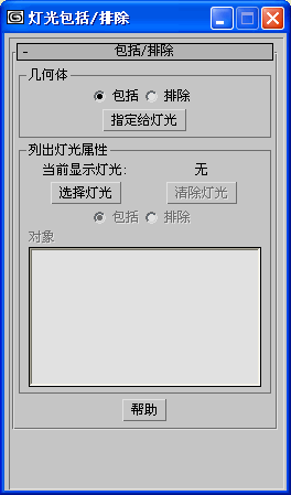 “灯光包括/排除”对话框
