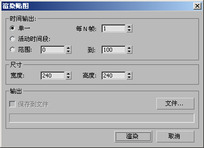 当您使用示例窗右键单击菜单中的“渲染贴图”渲染示例窗中显示的贴图时,3ds Max 将打开“渲染贴图”对话框。