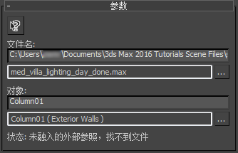 显示包含外部参照材质源的场景文件的路径和文件名。可以对此进行编辑以指向不同的路径和文件。