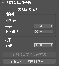 “太阳定位器参数”卷展栏可调整太阳定位器对象的一些设置。