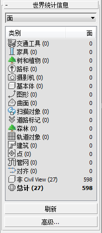 列出 Civil View 对象类别和当前场景中存在的每个类别的对象总数。