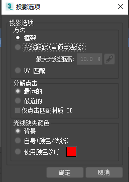 打开“投影选项”对话框(请参见下面的部分),从中可以选择投影方法并调整有关射线击中和未击中的选项。