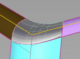 当该选项处于启用状态时,过渡部分的第四条边(底部曲面边)将与底部曲面对齐。当该选项处于禁用状态时,可独立于三个相交的过渡部分控制底部边对齐。