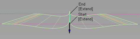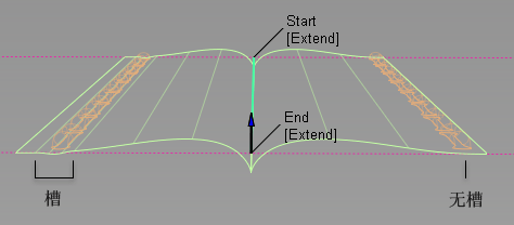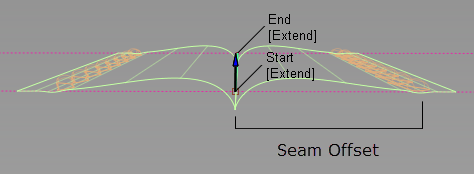选中此选项时,“Start”和“End”滑块将显示在控制窗口中,箭头操纵器将显示在选定的面上线上。拖动这些箭头可以沿面上线修改接缝范围。