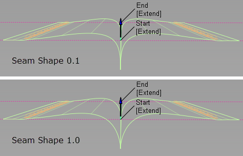 使用这些滑块可沿面上线修改接缝的范围。“Start”和“End”的值分别为 0.0 和 1.0,可用于定义初始范围。
