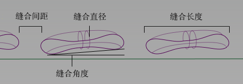 接缝和缝合处间的距离。
