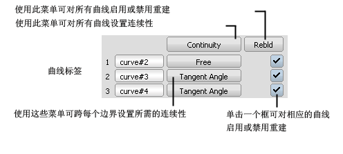使用“Rebld”弹出菜单可一次性为所有曲线开/关重建功能。
