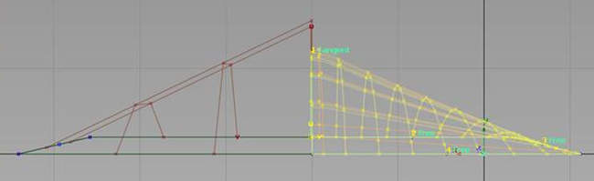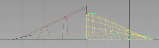 线性过渡 - 请注意,外壳线从第 3 个 CV 行之后近似形成一条直线。