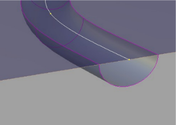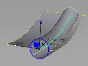 激活的控制柄将显示为浅蓝色。轨道滑块是沿轨道滑动的“球”,用于指示半径在轨道上的应用位置。半径控制柄是未来曲面的一个近似横断面,用于控制该点的半径。