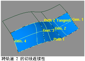 在轨道曲面和相邻曲面之间的边界处显示曲面连续性标注。该标注是永久性的,您从“Rail Surface”工具退出后,它仍旧存在。要移除该标注,请使用“Pick”>“Locator”