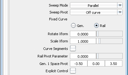 例如,如果“Scale Xform”为 2,则形状曲线在沿轨道曲线的长度进行扫掠时增长一倍。如果“Scale Xform”为 0.5,则形状曲线在进行扫掠时将收缩一半。