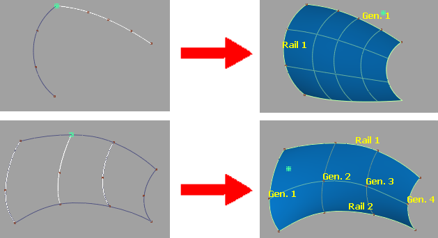 “Rail Surface”图标的外观取决于“Rail Surface Options”窗口中的“Generation Curves”和“Rail Curves”设置。
