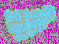 Curvature - 单击网格的绿色区域,选择设置的“Minimum Radius Limit”范围内的三角形。右键单击可取消选择。继续单击可添加到选择或从选择中减去。