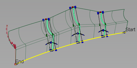 Guide Curve - 轮廓框架的方向由相邻曲线的法线方向决定。