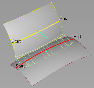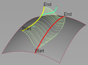 此选项指定多个轮廓之间的过渡类型(要么来自于输入曲线,要么来自于操纵器)。它决定了运行在轨道曲线方向的曲面等参线的形状。