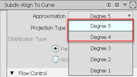 “Align to Curve”工具现在支持将 4 阶和 5 阶曲线用于驱动对齐。从“Approximation”设置中选择“Degree 4”或“Degree 5”。