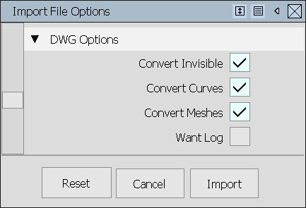 现在,在“Import File Options”、“Open File Options”和“Save Active/As Options”窗口中提供了针对 DWG 和 DXF 文件的“Import”和“Export”选项。