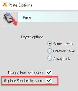 在后台文件之间复制和粘贴内容时,“Paste Options”中新的“Replace Shader by Name”选项使您可以在粘贴时替换材质球。