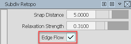 我们向“Subdivision Insert Edges”和“Subdivision Retopo”工具添加了一个新的“Edge Flow”选项。“Edge Flow”可调整新边的放置,使其与相邻边的曲率达到最佳拟合状态以保持细分主体的形状。“Edge Flow”在插入垂直边和平行边时适用。
