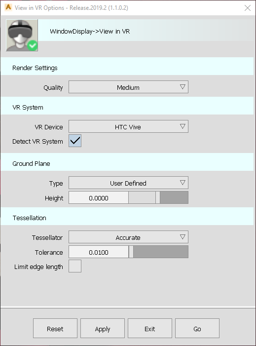 我们在“View in VR”选项窗口中新增了以下 Alias VR 配置设置:
