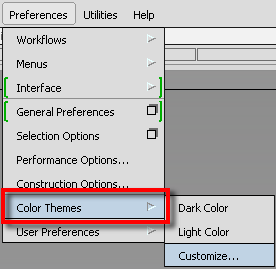 - 您可以在“Preferences”>“Color Themes”中快速更改 Alias 颜色主题。“Dark Color”和“Light Color”选项可分别将用户颜色设置为默认的深色和浅色颜色主题。您还可以通过单击“Customize”从此菜单快速访问“Color Theme Editor”。