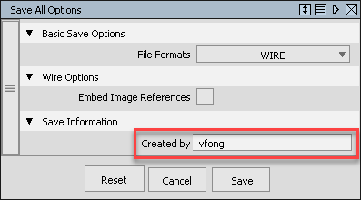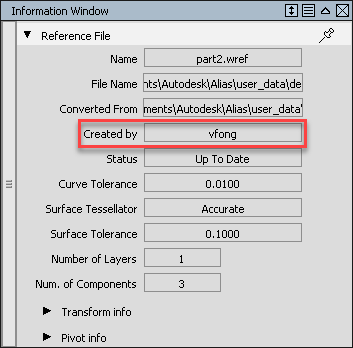 作者信息与从保存的 .wire 文件创建的参考文件一起存储。当您查看选定 .wref 几何体时,“Created By”将显示在“Information Window”中。