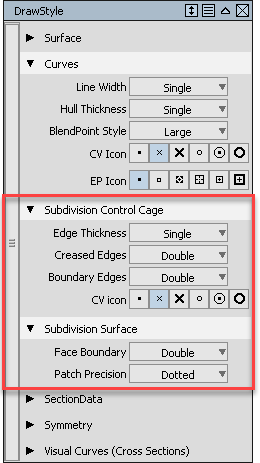 为了支持新的细分功能,我们添加了用于细分曲面几何体与控制框架操纵器的“DrawStyle”选项。