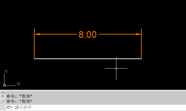 - 绘制长度为八个单位的直线或多段线。