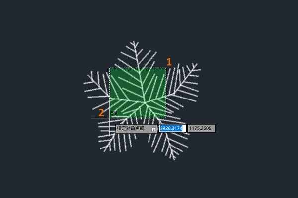 - 在提示“指定基点”时,选择参照点 (1),然后将对象拖动到所需位置 (2)。