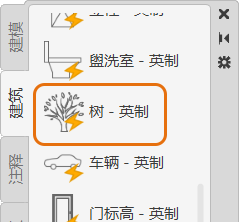 - 从选项板中选择“树 - 英制”块,然后单击绘图区域中的任意位置以放置该块。
