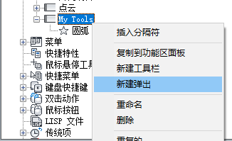 在要向其中添加弹出型工具栏的工具栏上单击鼠标右键。单击“新建弹出型工具栏”。