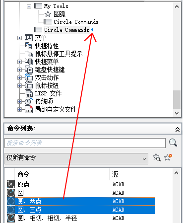 中的自定义设置”窗格中,拖动要添加到工具栏弹出型按钮中的命令。