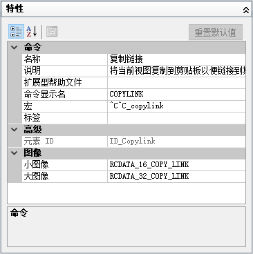 以下样例通过将波浪号 (~) 添加到“名称”特性中值的前面来禁用“复制链接”菜单项。