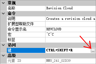 - 在“特性”窗格中,单击“键”框,然后单击 […] 按钮以打开“快捷键”对话框。