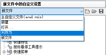 - 从“自定义”选项卡上的“<文件名> 中的自定义设置”窗格的下拉列表中,选择一个 CUIx 文件。