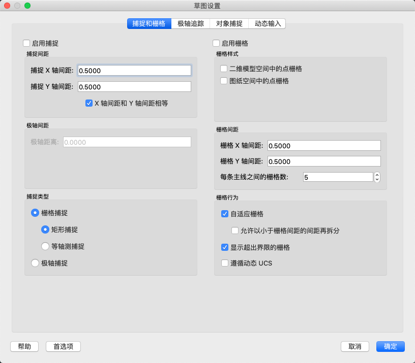 “捕捉和栅格”选项卡(“草图设置”对话框)