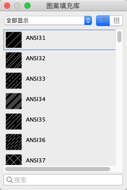 显示所有预定义和自定义图案以及渐变填充图案的预览图像。