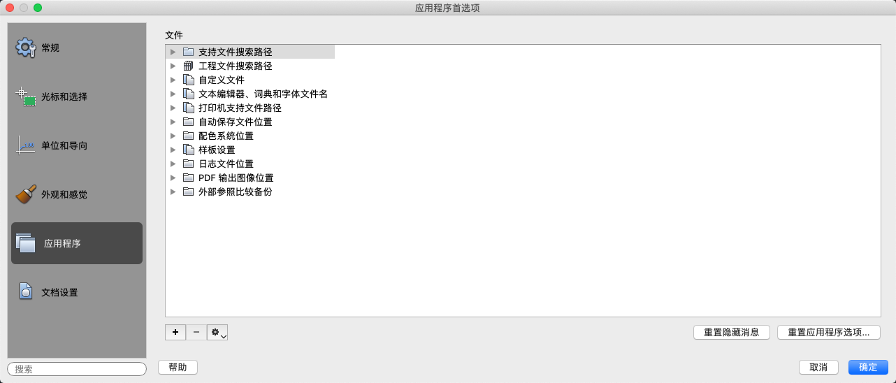 在重置程序前,可以自定义的许多文件被备份为归档文件,命名约定为设置备份<日期><时间>.tgz。归档文件的保存位置为 /Users/<用户名>/library/application support/autodesk