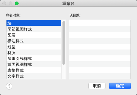 更改指定给命名对象(例如图层和标注样式)的名称。