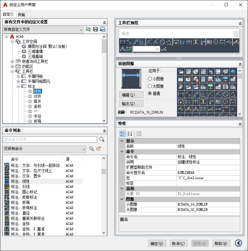 提供一个界面,用于自定义工作空间、工具栏、菜单、功能区面板、快捷菜单和其他用户界面元素。