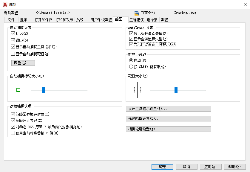 设定多个编辑功能的选项(包括自动捕捉和自动追踪)。