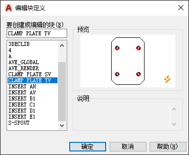 显示选定块定义的预览。如果显示闪电图标,则表示该块是动态块。