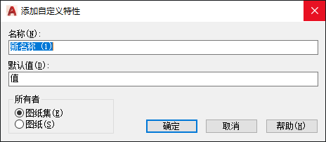 SHEETSET(命令) 查找:“打开图纸集” > 在顶部节点上单击鼠标右键 > “特性” > “编辑自定义特性” > “添加”