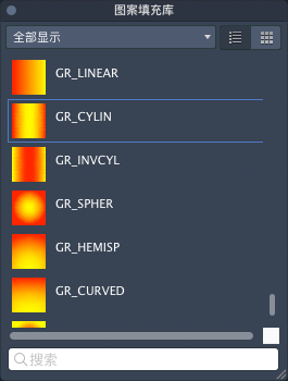 显示所有预定义和自定义图案以及渐变填充图案的预览图像。