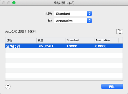 比较两种标注样式的特性或显示一种标注样式的所有特性。