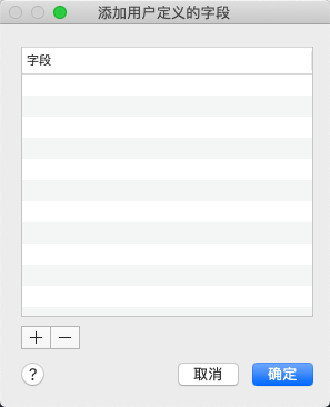 用户定义的字段使用“用户定义的字段”对话框创建并编辑。当在“打印戳记”对话框中选择“添加/编辑”按钮时,将显示“用户定义的字段”对话框。
