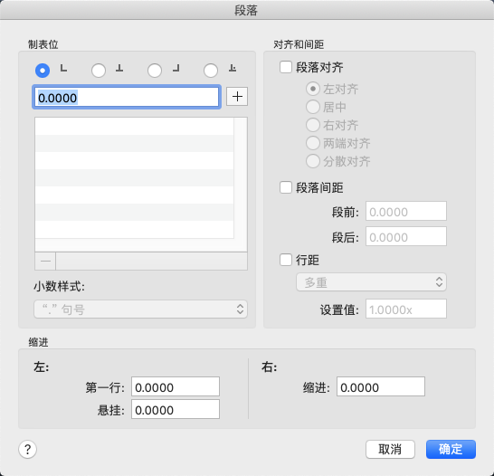 指定要用于段落的制表位和小数样式。