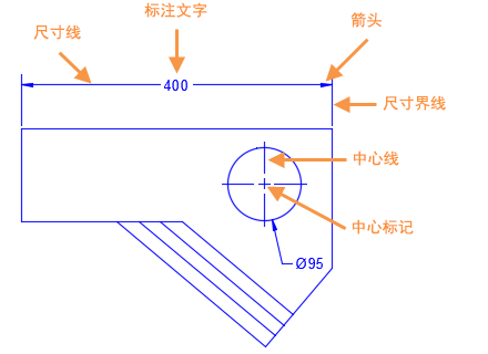 标注具有以下几种独特的元素:标注文字、尺寸线、箭头和尺寸界线。